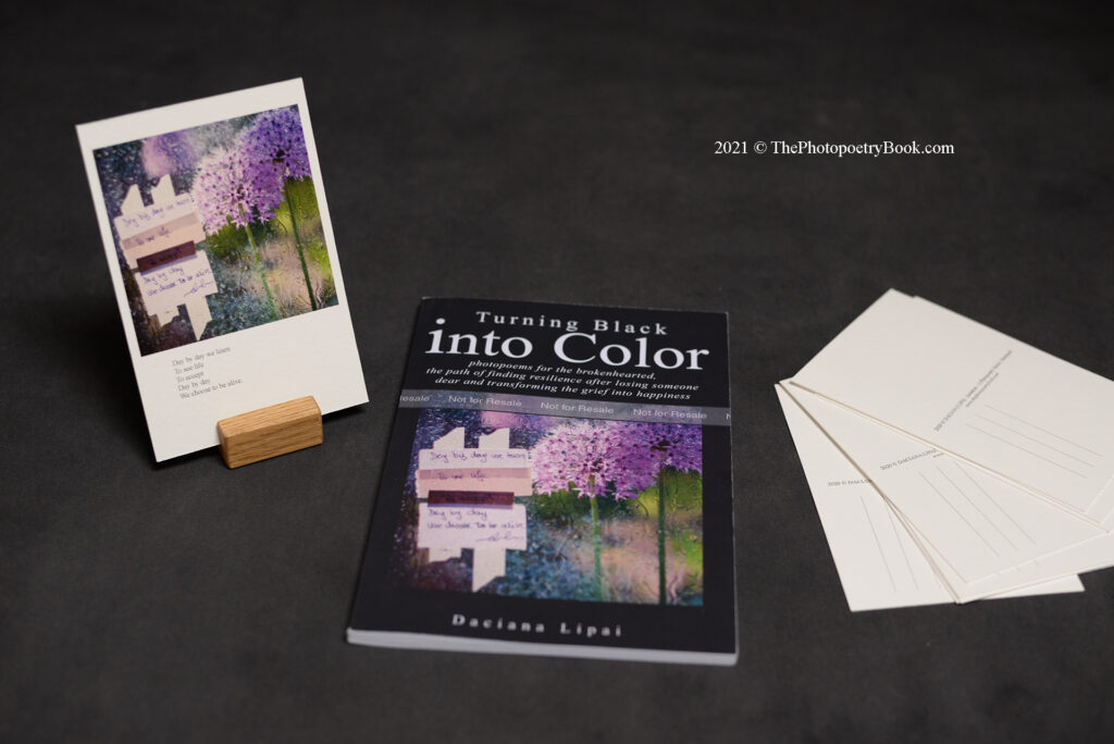 I’ve written TURNING BLACK into COLOR – photopoems for the brokenhearted, trying to create a deeper meaning through art, that in-between space where the heart can heal. I think that poems can go much more further and reach deep inside the heart, creating a deeper connection. My concept of creating the photopoems is encapsulating that deeper connection, that deeper meaning, that can heal souls.